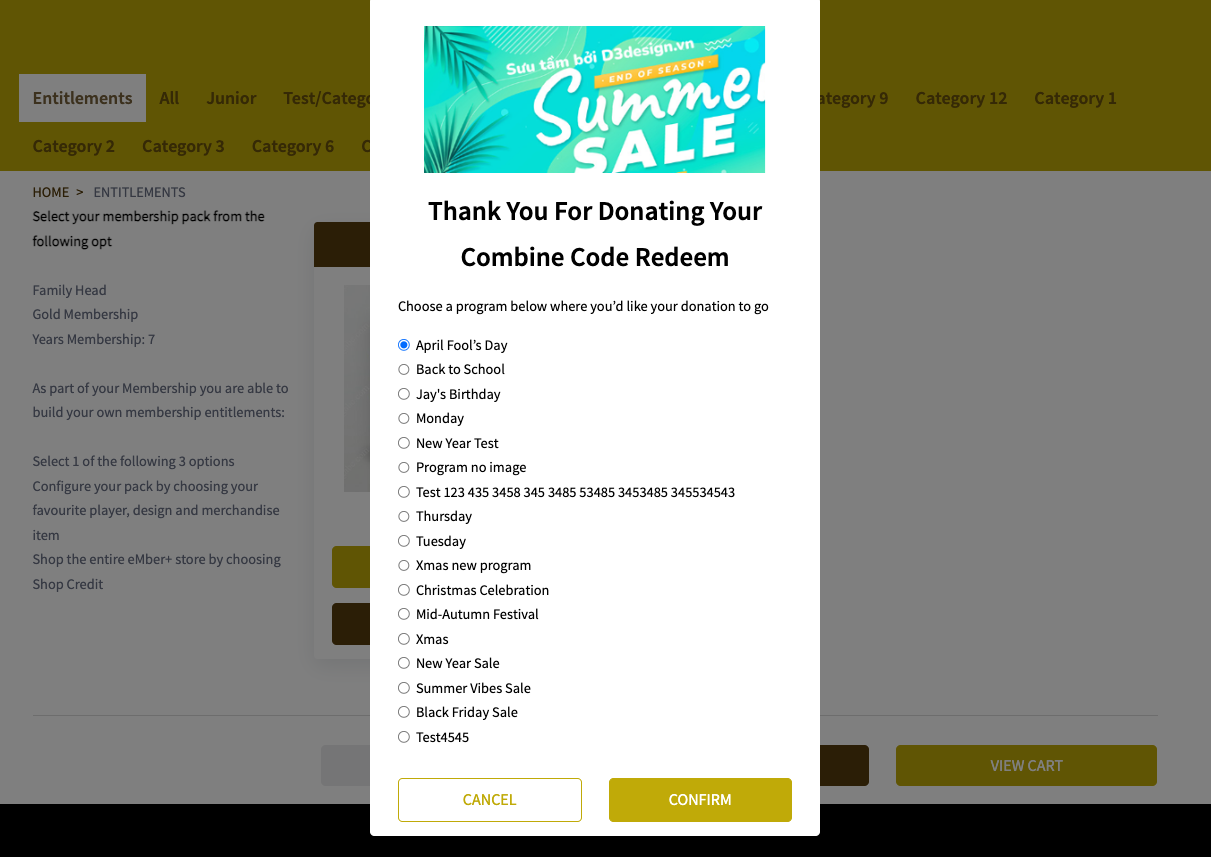- Complete donation within the normal checkout or entitlement flow