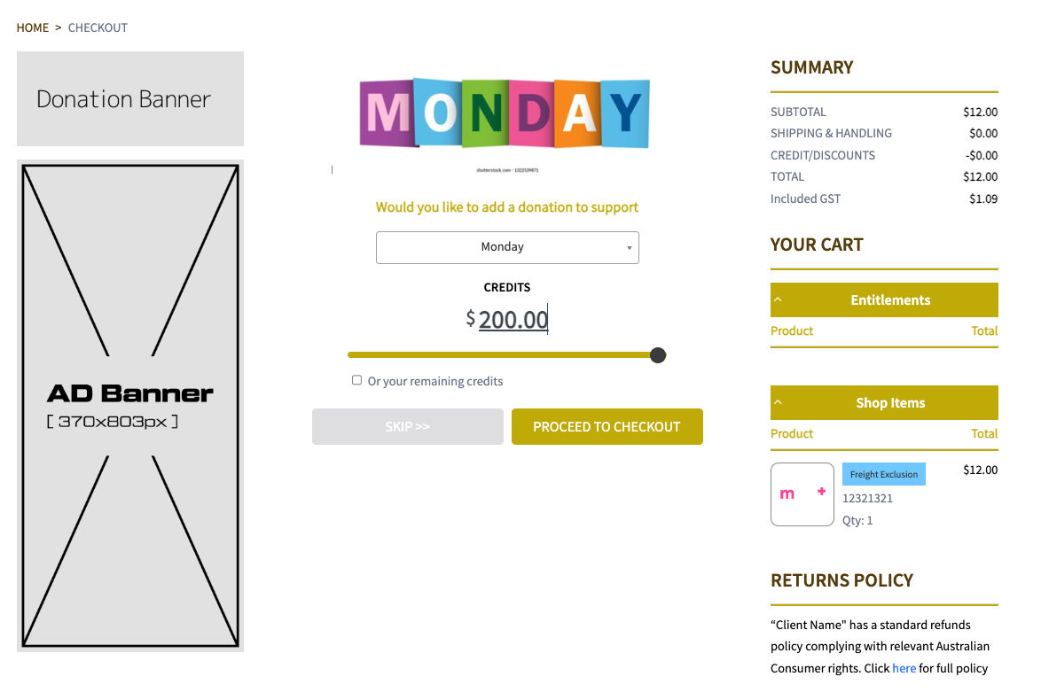 Credit Donation allows customers to donate their remaining credits or additional credits at the last step of the checkout.