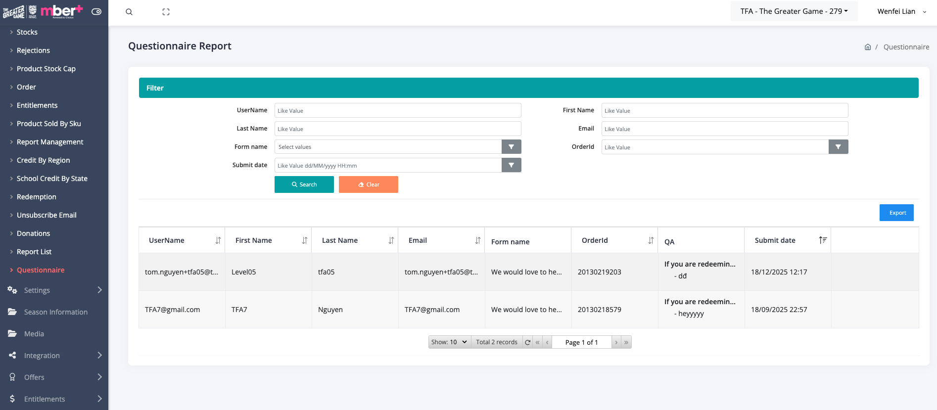 Customer feedback submitted through the post-checkout form is available via mber+ reporting for client review.